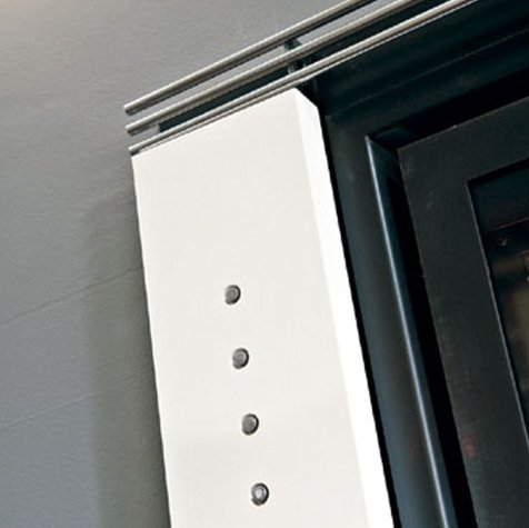 Обрамление из белого стонелита с декоративными стальными болтами.