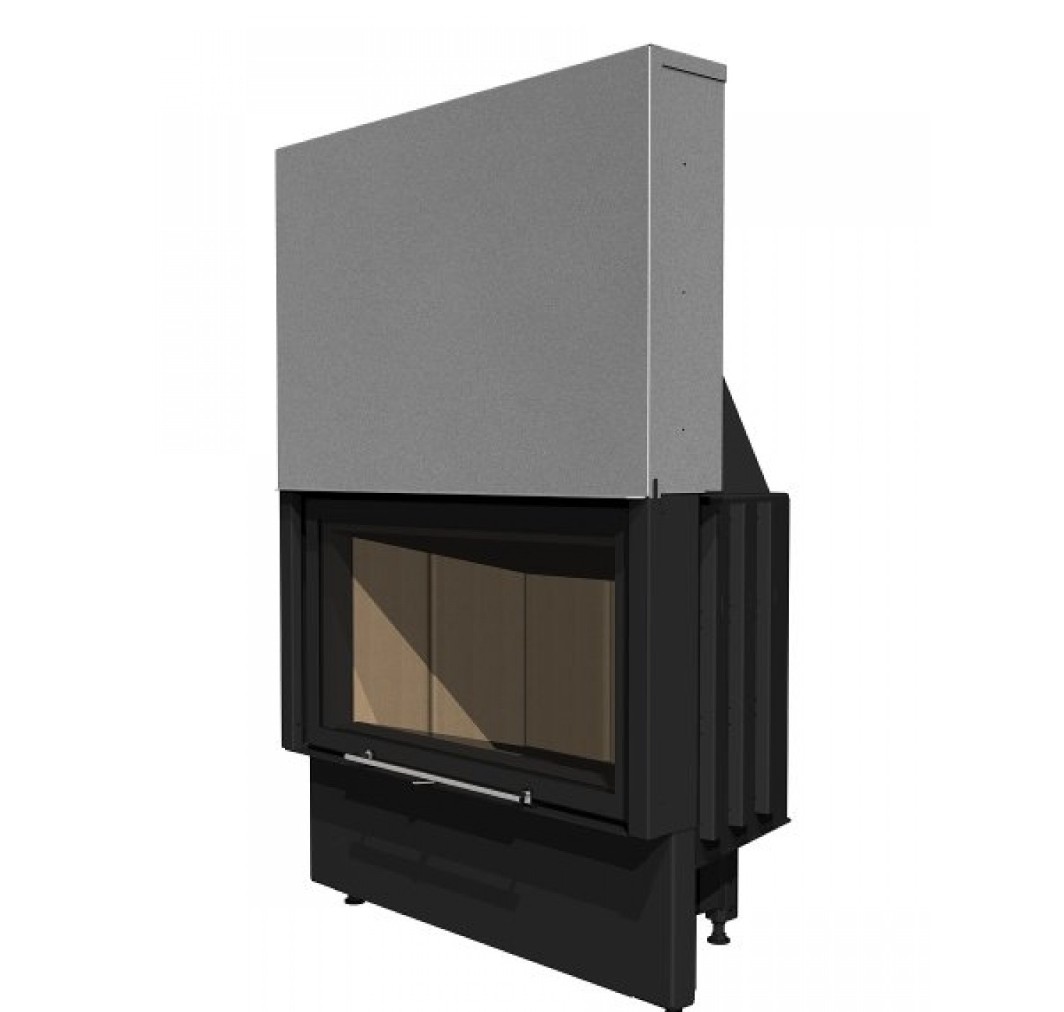 Корпус каминной топки выполнен из жаропрочной стали, колосники и патрубки из чугуна.